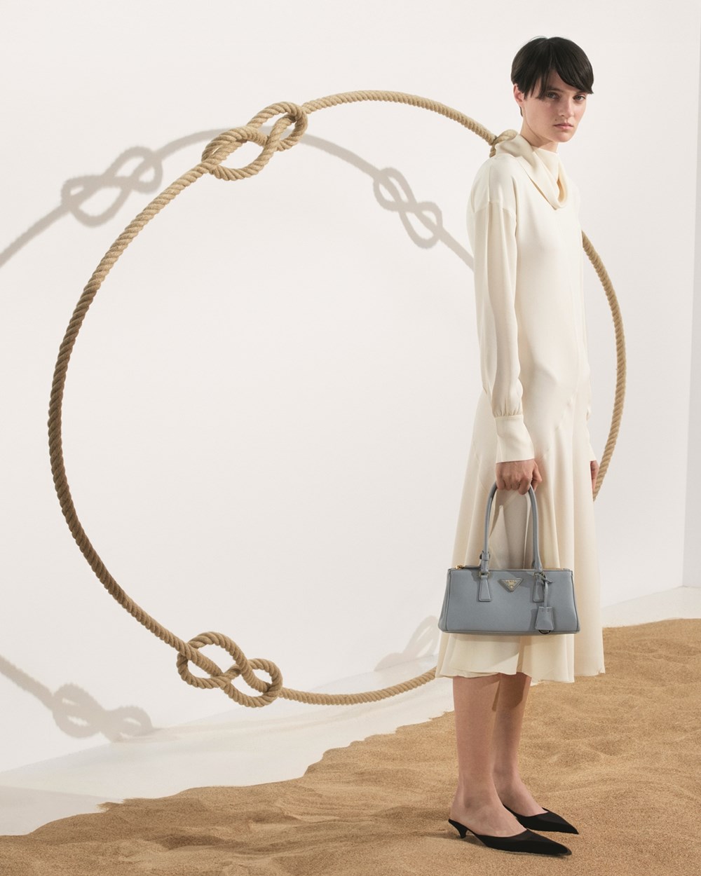 Des sacs à cordes, des anses détachables ou encore le classique seau Prada revisité soulignent une praticité chic, pensée pour la femme libre et moderne.