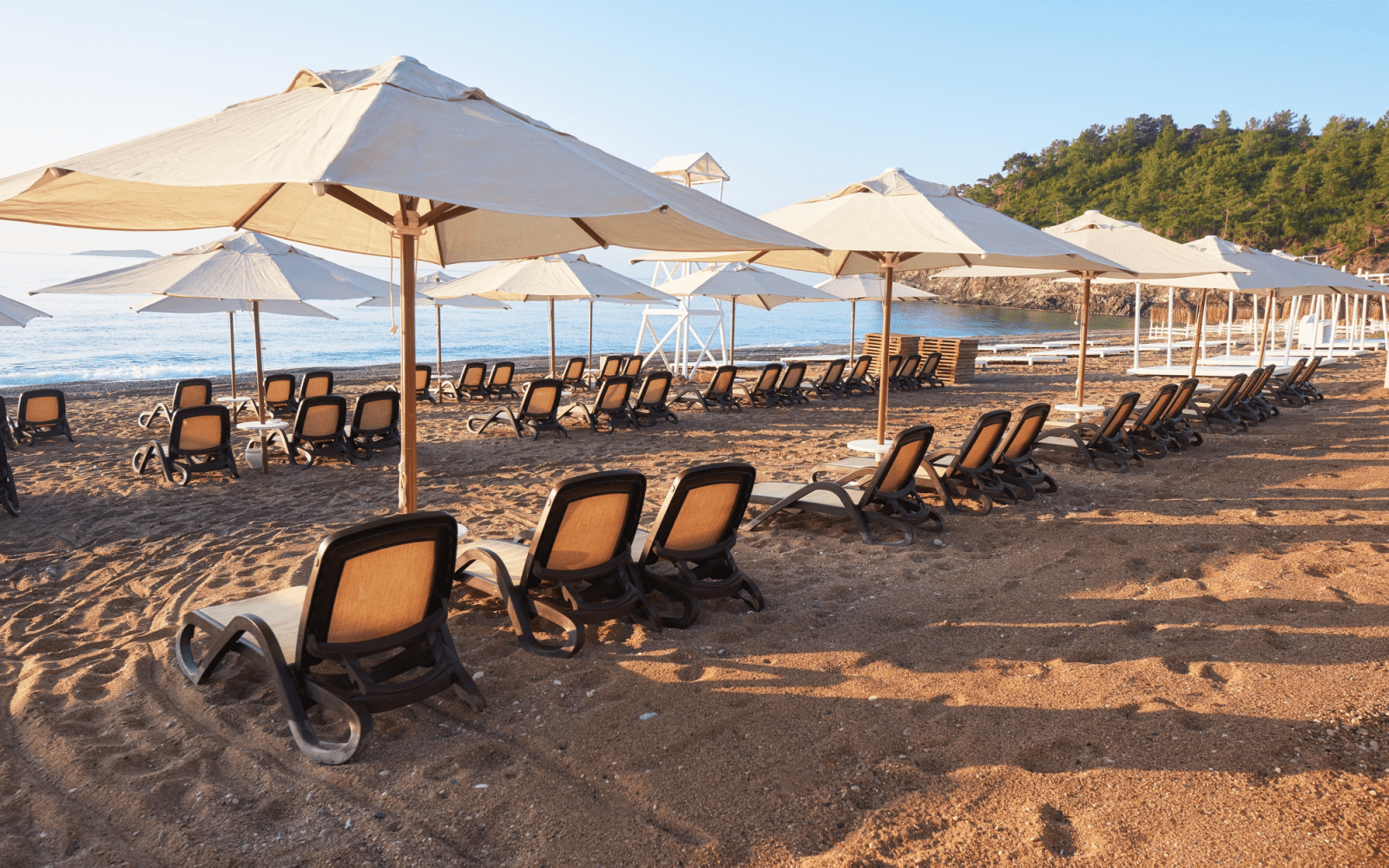 - Confort optimisé : chaises longues, parasols, restauration, musique et animations.