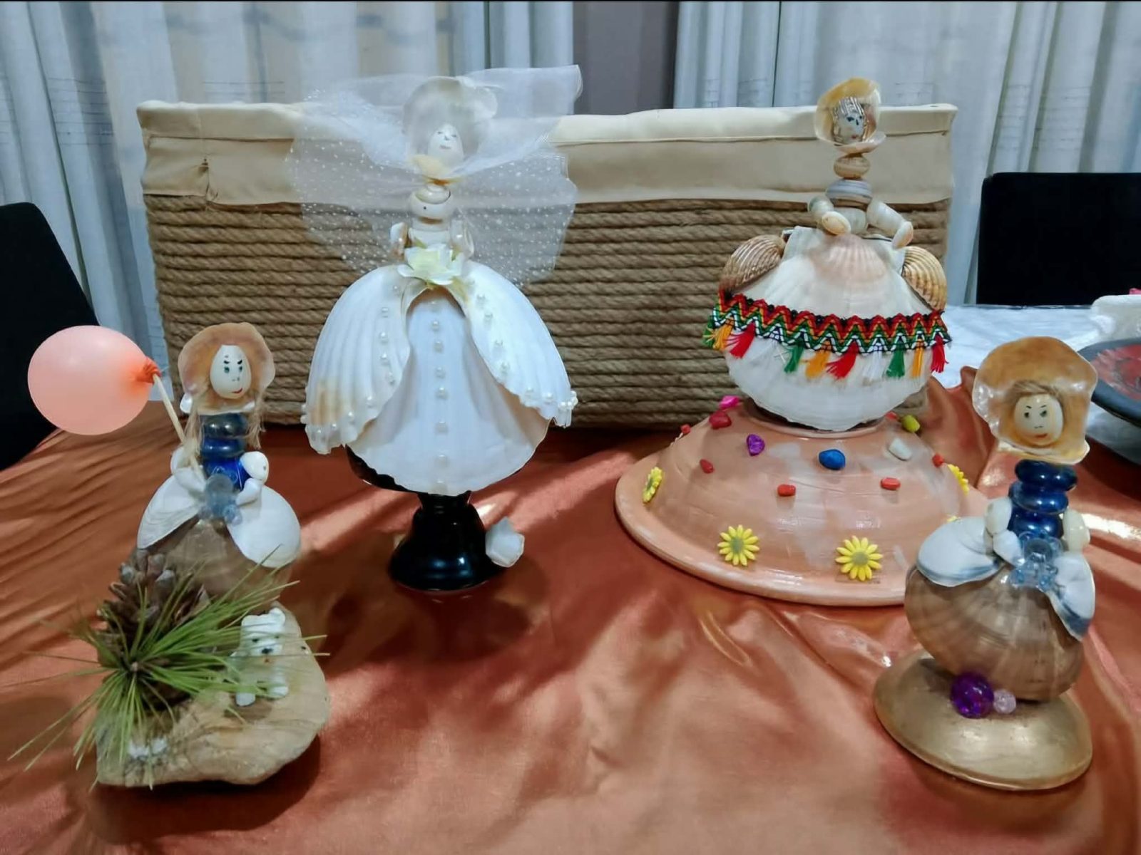 Dans le petit atelier aménagé chez elle, elle réalise aujourd’hui des poupées en coquillages, des tableaux décoratifs, et surtout des pièces très appréciées du public : des mariées finement habillées, des ballerines, des danseuses de flamenco, ainsi que des poupées spécialement conçues pour Yennayer, vêtues de tenues traditionnelles kabyles. Les mariées, magnifiquement parées et travaillées avec minutie, restent les créations les plus recherchées par les visiteurs et les clients.